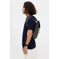Roll Top Mini van Lefrik is de kleinere versie van de Roll-rugzak, maar biedt alsnog genoeg ruimte om al je nodige spullen mee te nemen als je de stad ingaat. Het heeft twee standen dankzij het roll-top sluitsysteem met sterke magneten en ritssluiting. Het brede hoofdvak is voorzien van een gewatteerde hoes voor een kleine tablet, een vak met ritssluiting en een mes-organizer.